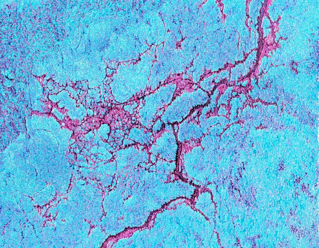 不思議なもので、衛星画像を通して、空気の寒さまで伝わってくるような光景です。